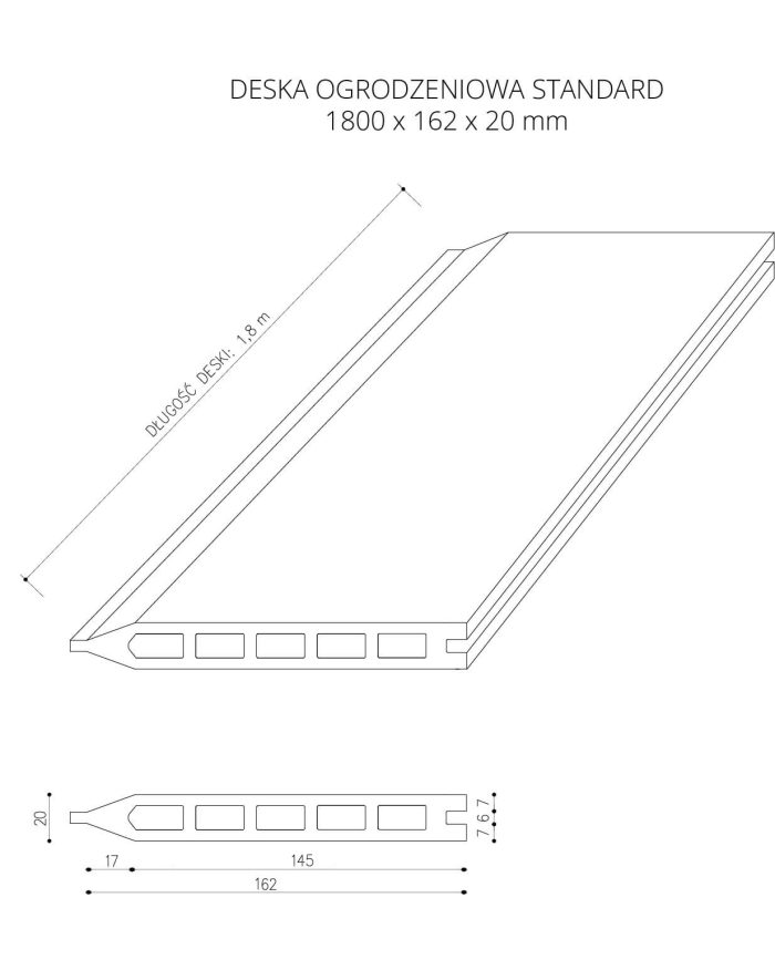WPC obloga za ograde Standard Gray 162 x 20 mm – 1,8 m